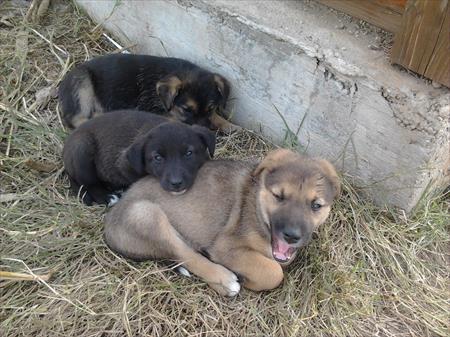 Pentru adoptie trei pui metis, femele , varsta doua luni, talie mijlocie.