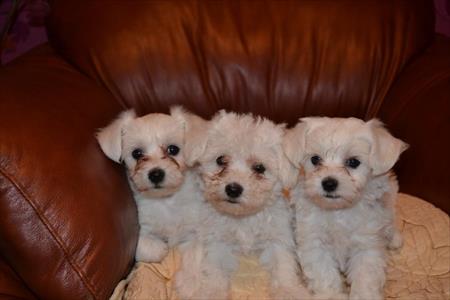 Vand 3 pui bichon maltese masculi, 6 saptamani, cu carnet, deparazitati, vaccinati pret 500 RON