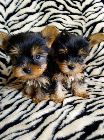 Yorkshire terrier negru cu pete de foc, talie mica, aprox 2.5 kg la maturitate de vanzare, frumosi,sanatosi si jucausi. Catelusii vin insotiti de pasaport international,microcip implantat,carnet de sanatate,vaccinuri,deparazitari interne si externe,cusca speciala de transport. Transport gratuit in tara. pret 350 euro/
