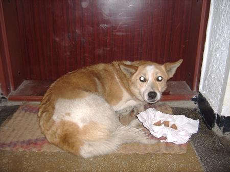 Aceasta catelusa a aparut cu cateva ore in urma in scara blocului.Nu am mai vazut-o prin zona pana acum. E foarte sperioasa, sta incolacita pe un pres.Nu stiu varsta estimativa, dar sigur este adulta.Este destul de murdarica, dar avand in vedere vremea de afara, nu cred ca a fost pierduta/abandonata de mult timp.