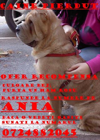 PIERDUT SHAR-PEI CONSTANTA-ZONA COICIU. O chiama ANIA,culoare bej, are un an, purta un ham rosu, a fost lovita de masina . In data de 01.11.2010 s-a pierdut in cartierul Coiciu, ultima data a fost vazuta pe strada Baba Novac.